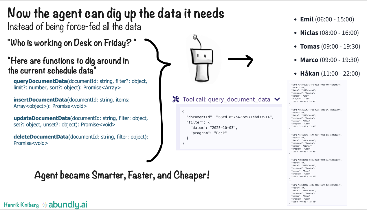 Here are the slides for my talk "AI Agents in Practice" at GOTO Conference in Copenhagen. I showed a bunch of concrete examples and demos, and shared some learnings from the past couple of years of agent development.