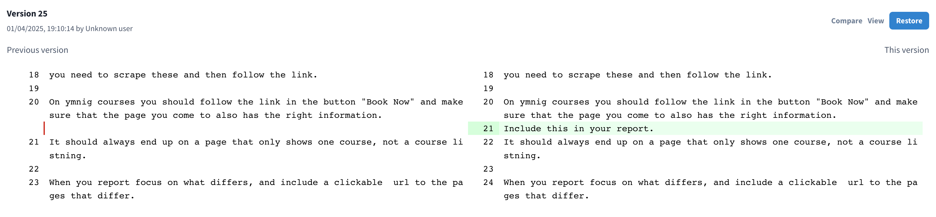 Nu får jag varje vecka en detaljerad rapport som visar exakt var informationen skiljer sig åt. Här är ett färskt exempel: