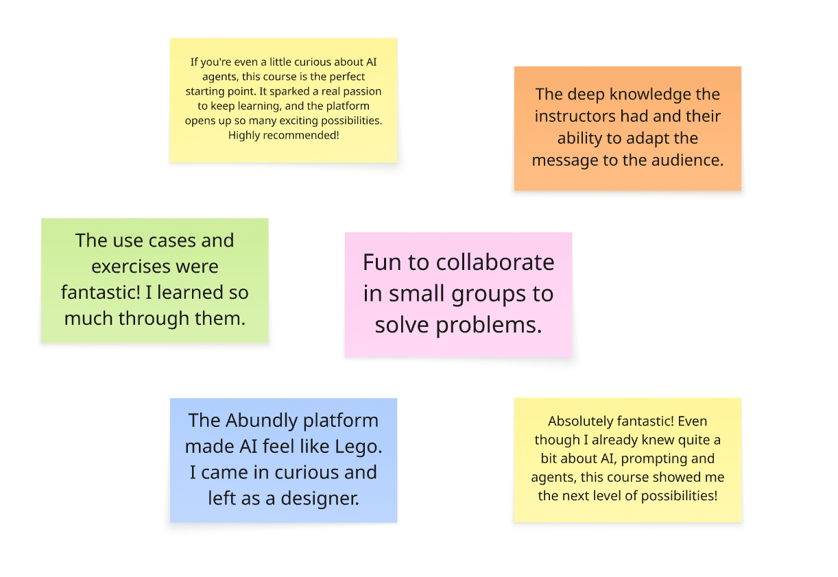 - Access to Abundly's agent platform (app.abundly.ai) during and after the course